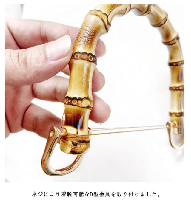 | バンブー持ち手(2本組) 【金具付き】 天然素材を使用 バッグ用のバンブー製のハンドル ネジにより着脱可能なD型金具を取り付けました。 素材が持つ、豊かな風合いをぜひお楽しみください。 ナチュラルテイストな竹製持ち手。 ハンドクラフトのお楽しみが増えますね。 | |