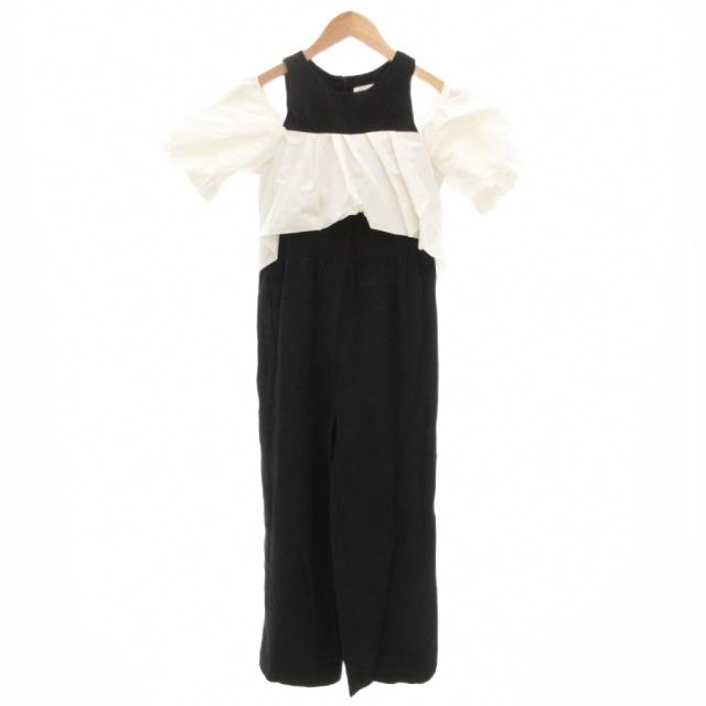 【中古】ザラ ZARA オールインワン サロペット オフショルダー フリル 切替 164 黒 ブラック 白 ホワイト