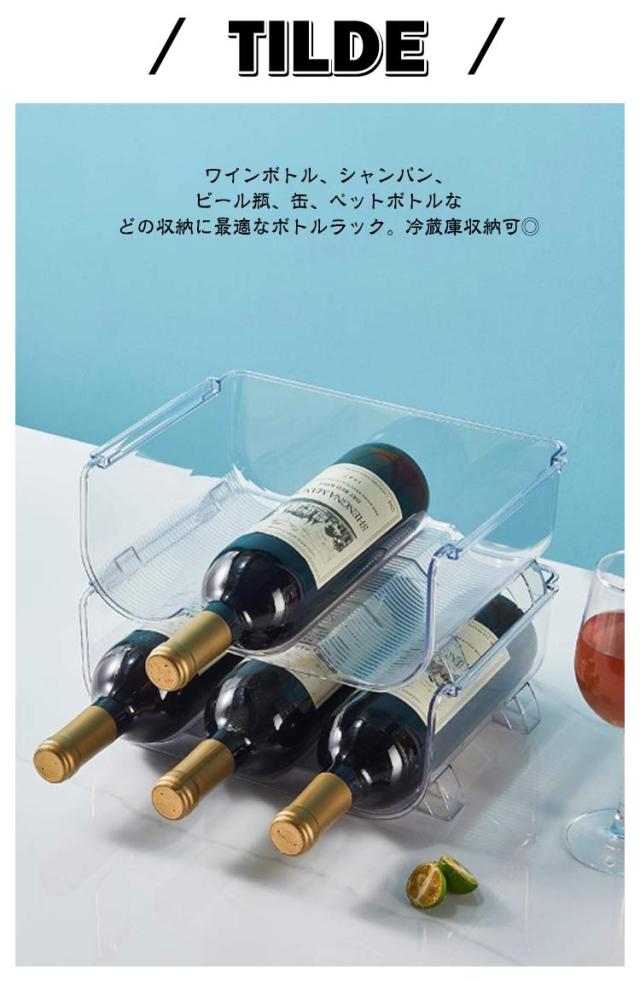 2個セット ワイン収納 ワインラック 冷蔵庫内 2個セット 冷蔵庫 3本 ワイン棚 収納ケース ラック 缶 ペットボトル シャンパン 2本 6本 収納 重ね置き 缶ストッカー ワインホルダー ドリンクホルダー ペットボトルホルダー ボトルホルダー 冷蔵庫収納 クリア