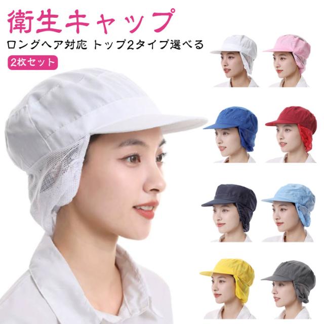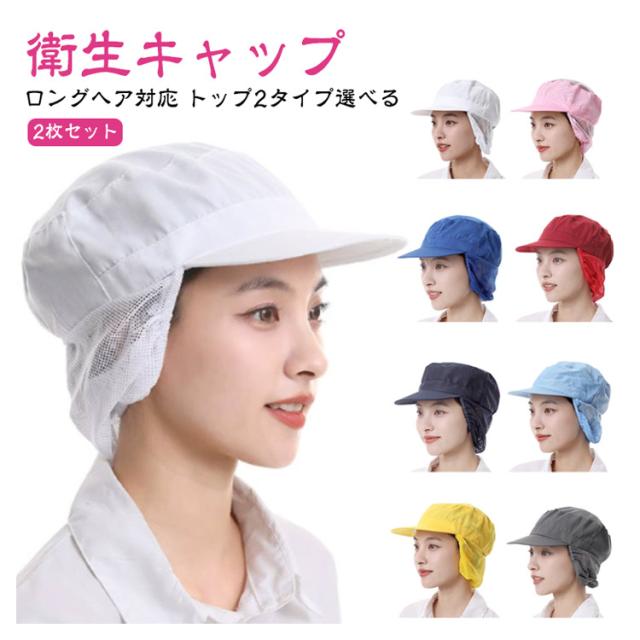 衛生キャップ 帽子 2枚セット 衛生帽 コック帽 メッシュ レディース ロングヘア 髪落下防止 カフェ 工場 男女兼用 キッチン帽子 作業用 帽子 厨房 給食 飲食店 備品 ハーフメッシュ 通気性 スタイリッシュ 給食帽子 メンズ カフェキャップ レストランキャップ