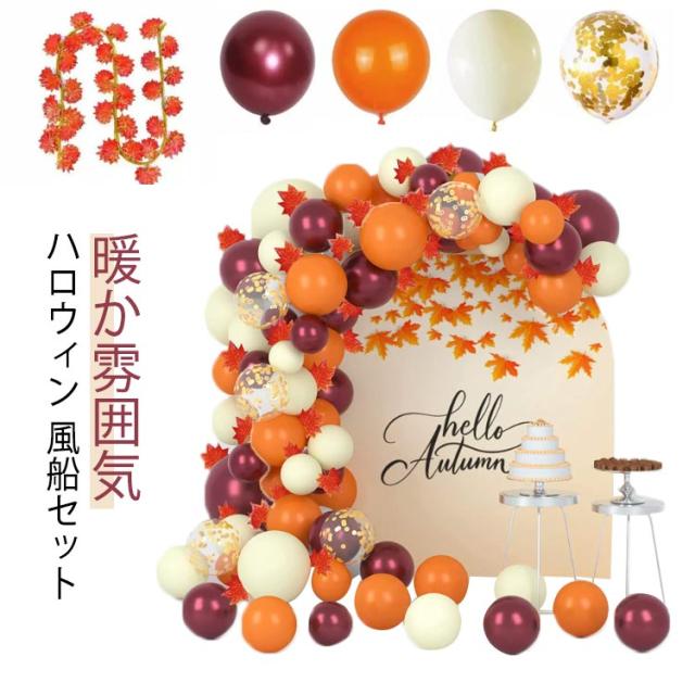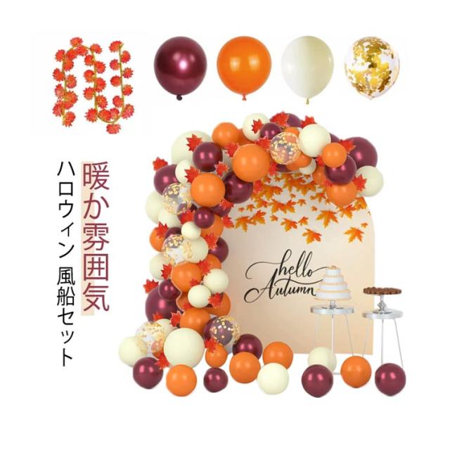 誕生日 飾り付け バルーンセット 110個セット 風船 オレンジ ゴールド ワインレッド ホワイト バルーン飾り 紅葉ガーランド 秋飾り 結婚式 バースデー 感謝祭 ハロウィンパーティー装飾