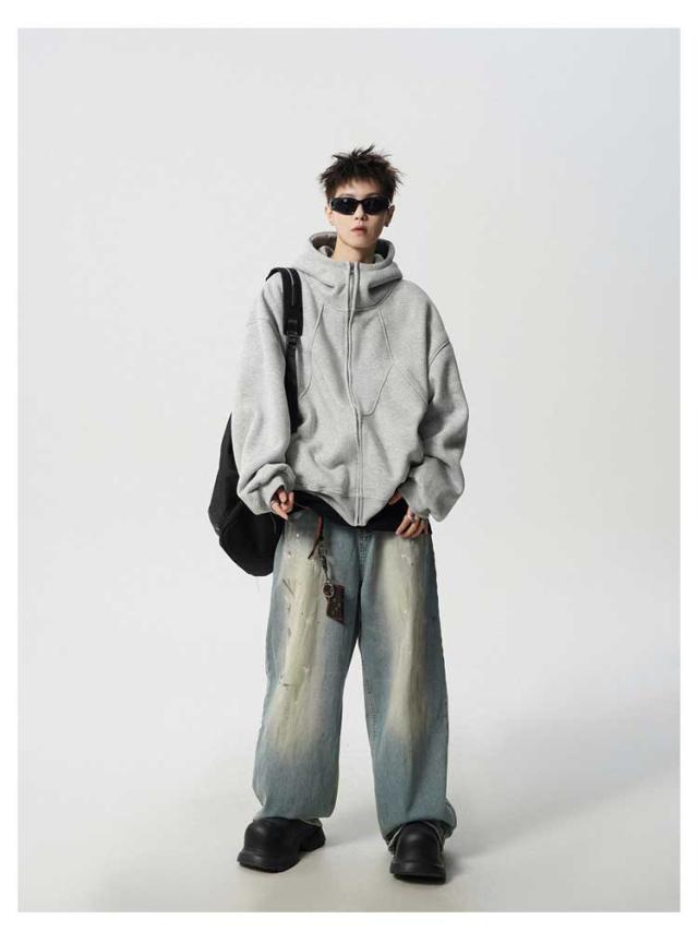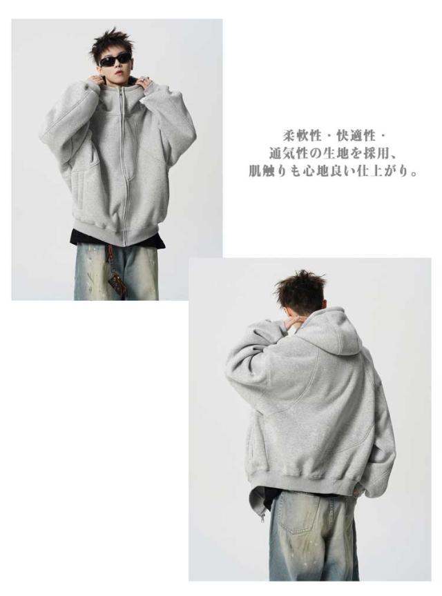 フード付 パーカー メンズ スウェット 長袖 アウター ジップアップパーカー トップス 秋冬 春物 ゆったり 大きいサイズ カジュアル ストリート スポーツ オーバーサイズ