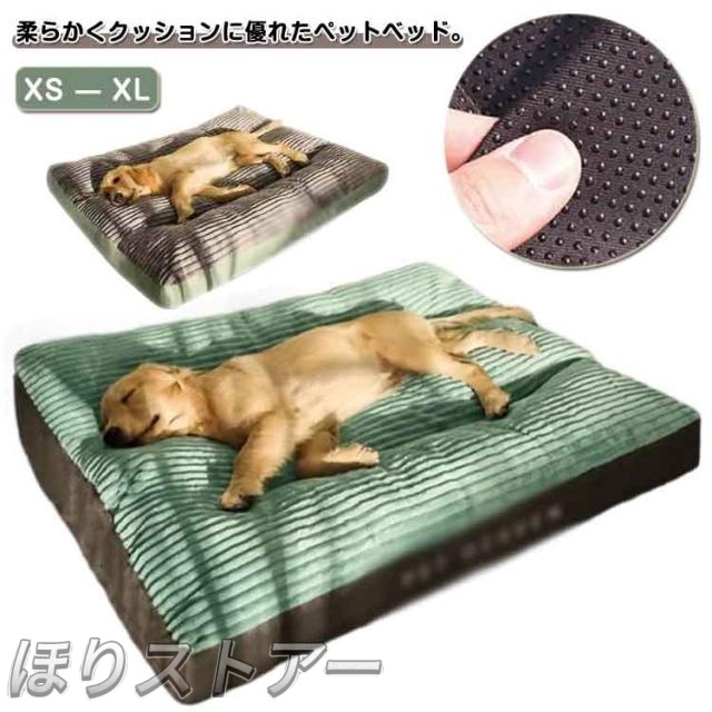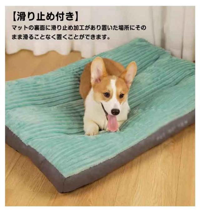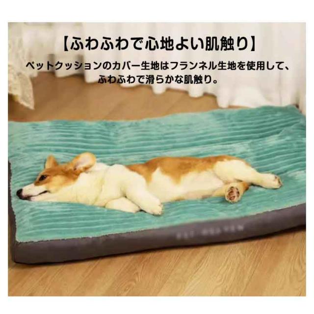| 柔らかくクッションに優れたペットベッド。 【滑り止め付き】マットの裏面に滑り止め加工があり置いた場所にそのまま滑ることなく置くことができます。 【ふわふわで心地よい肌触り】ペットクッションのカバー生地はフランネル生地を使用して、ふわふわで滑らかな肌触り。 【洗えていつも清潔】カバーを取り外すことができ、洗濯機に入れて簡単に洗えます。 | |