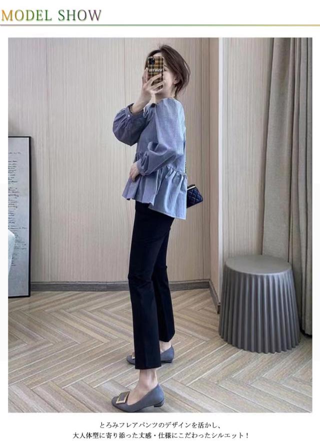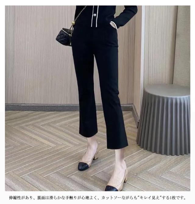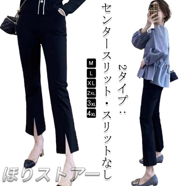 パンツ フレア レディース ボトムス ロングパンツ センタースリット サイドスリット ハイウエス クロップドパンツ ロング丈 九分丈 ストレッチパンツ フレアパンツ セレモニー 着痩せ 美脚 楽ちん きれいめ 春 夏 秋