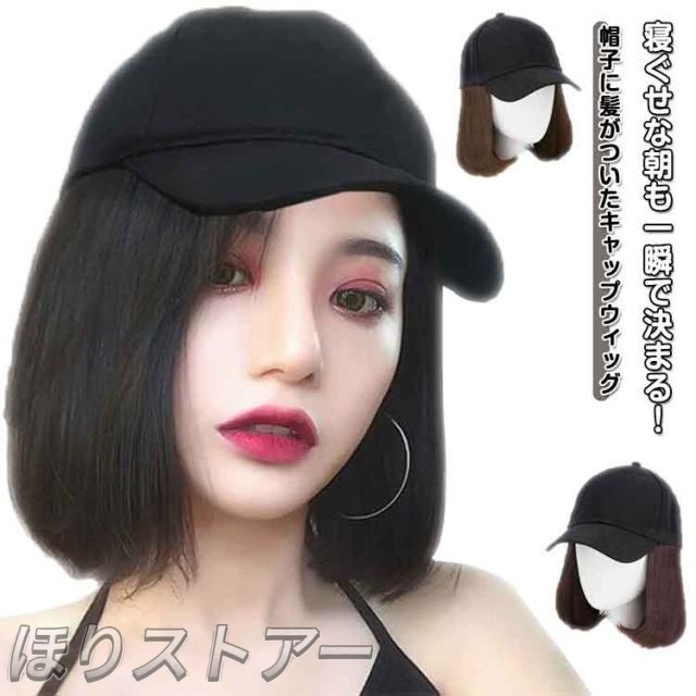 | 寝ぐせな朝も一瞬で決まる!帽子に髪がついたキャップウィッグ セットの手間はかかりません! フルウィッグとは違いかぶるだけだからちょっとお出かけしたいときに簡単ヘアチェンジ。 | |
