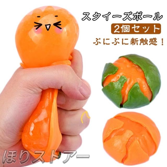 リストレスト スクイーズボール 変色 2個セット 蜜柑 おもしろ グッズ 癒し にぎにぎ リラックスグッズ リラックス ストレス解消 面白い 贈り物 プレゼント おもしろい ストレス解消 誕生日 プレゼント 握る 触感 減圧