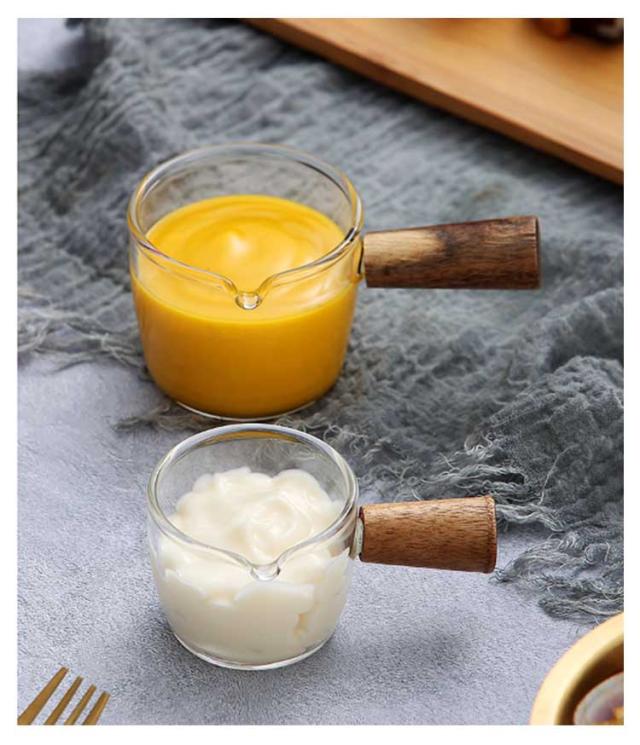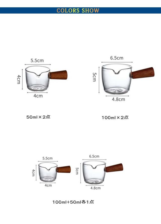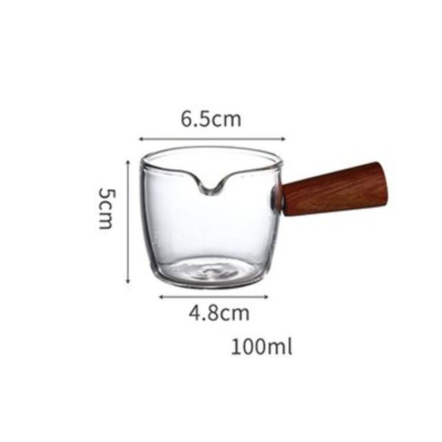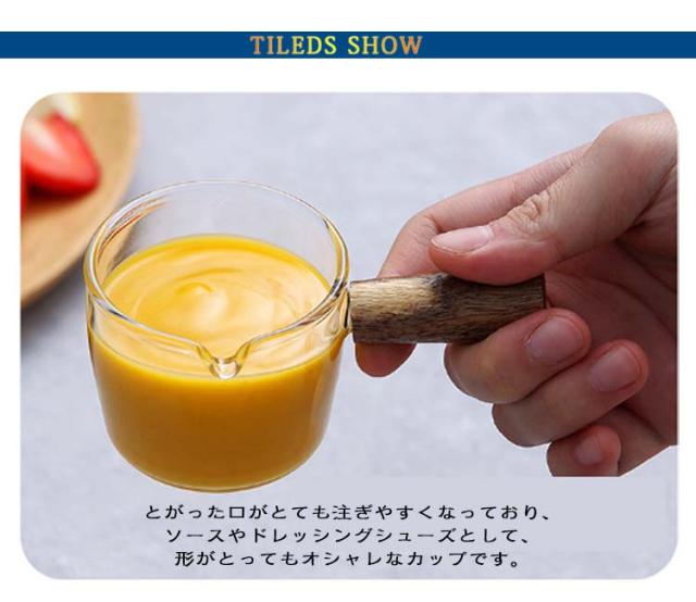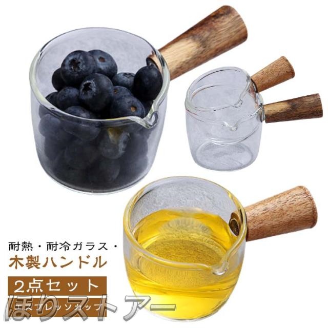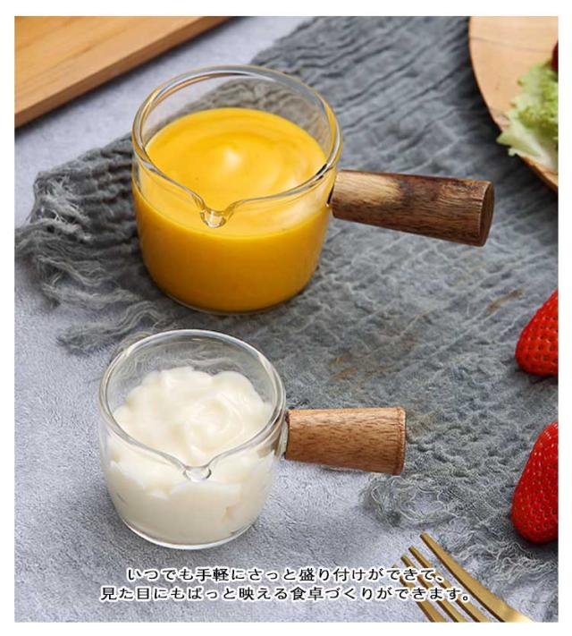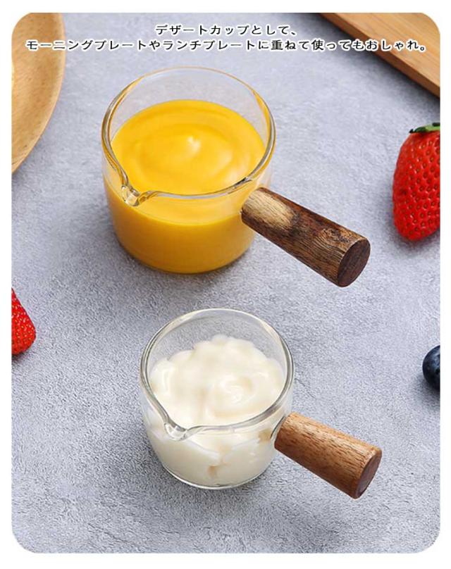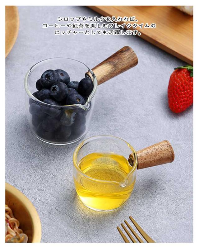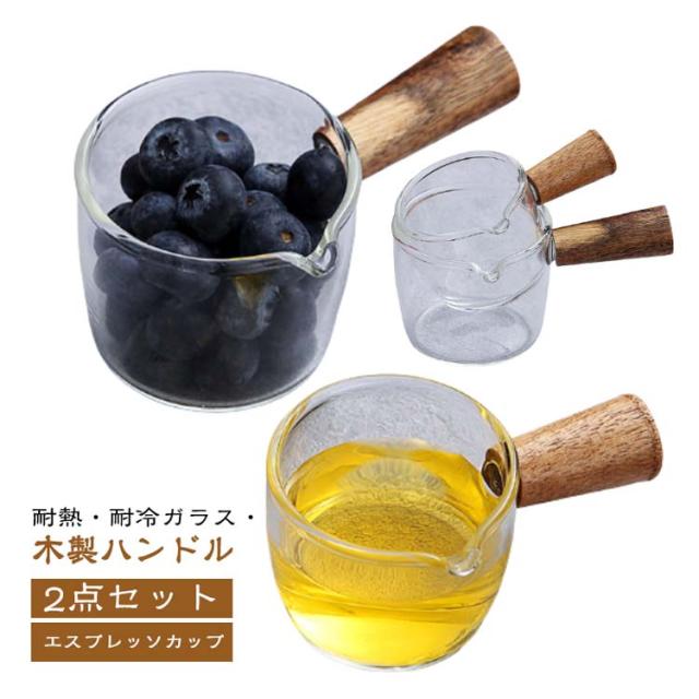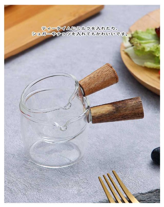 2点セット 耐熱ガラス ドレッシング入れ エスプレッソカップ 小鉢 50ml 100ml コーヒーサーバー ミニカップ ソース入れ ミルク ピッチャー バター入れ ジャム入れ ミニサラダ 耐熱 耐冷 木製ハンドル ハンドル付き コーヒー 珈琲