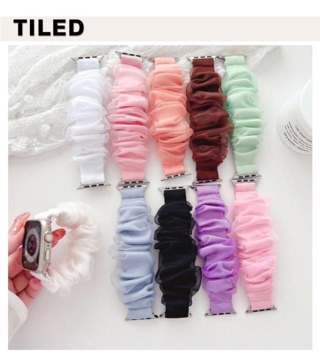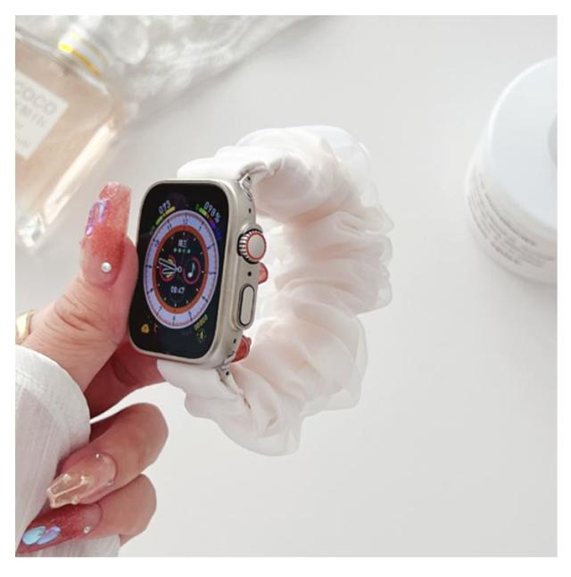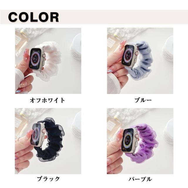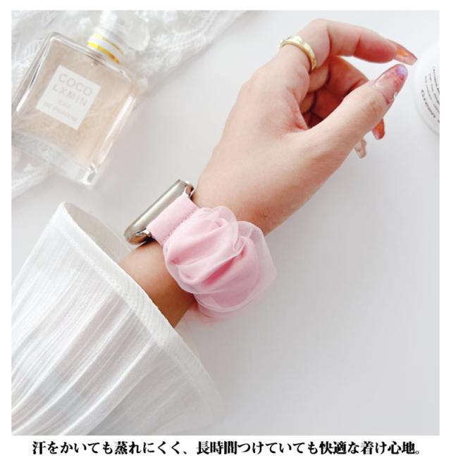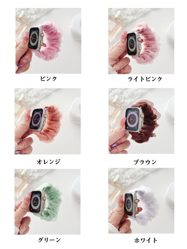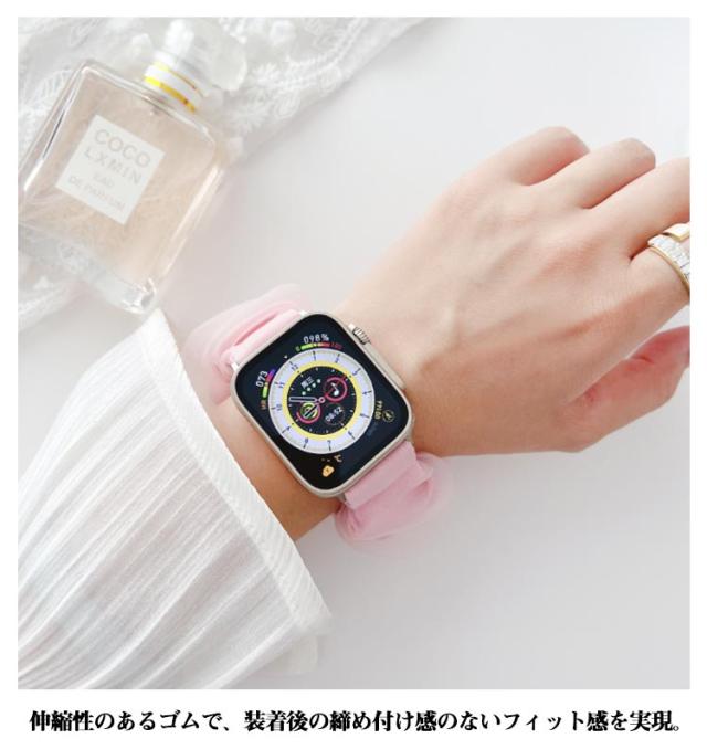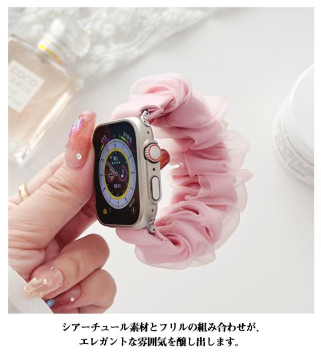 Apple Watch バンド シュシュ アップルウォッチ バンド レディース 女性 ゴム 痛くない 蒸れない シアー チュール フリル apple watch バンド かわいい おしゃれ ベルト 38mm 40mm 41mm 42mm 44mm 45mm 49mm Apple Watch 8 7 6 バンド 送料無料
