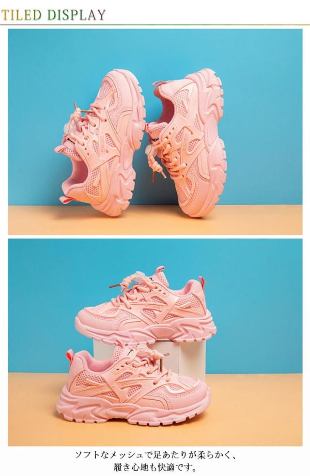 厚底スニーカー キッズ スニーカー 男の子 女の子 ダッドスニーカー 運動靴 小学生 通学靴 メッシュ ランニングシューズ 厚底 ローカット 脚長 結ばない ほどけない靴紐 ダンス靴 おしゃれ 通学 軽量 子供 ジュニア 白 ホワイト 18-23.9cm
