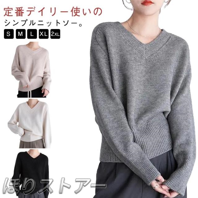 ニット セーター レディース トップス 長袖 Vネック セーター 春秋 秋冬 プルオーバー ゴルフウェア ニットトップス きれいめ 体型カバー ゆったり 暖か 通勤 通学 無地 カジュアル