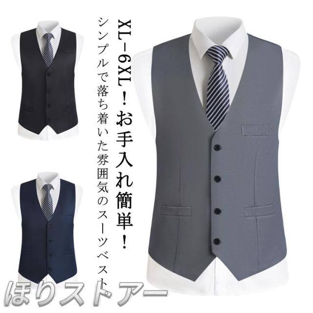 ジレ メンズ ベスト スーツベスト フォーマルベスト ジレベスト メンズ チョッキ スーツ ベスト 無地 前開き Vネック フォーマル スーツ ビジネス 大きいサイズ スリム フィット ベスト 男性 礼服 定番 格好いい 紳士的 結婚式 着回し 送料無料 黒 XL?6XL