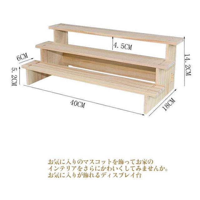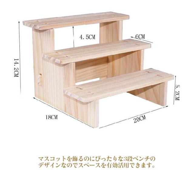 | 3段ベンチでスペースを有効活用できる 天然素材を使用したぬくもりある木製のディスプレイ台です。 お気に入りのマスコットなどの小物を飾ることができます。マスコットを飾るのにぴったりな3段ベンチのデザインなのでスペースを有効活用できます。 お気に入りのマスコットを飾ってお家のインテリアをさらにかわいくしてみませんか。 お気に入りが飾れるディスプレイ台 別シリーズのディスプレイ台とお気に入りのマスコットを組み合わせると、コレクションブースをより素敵に演出してくれます。 | |