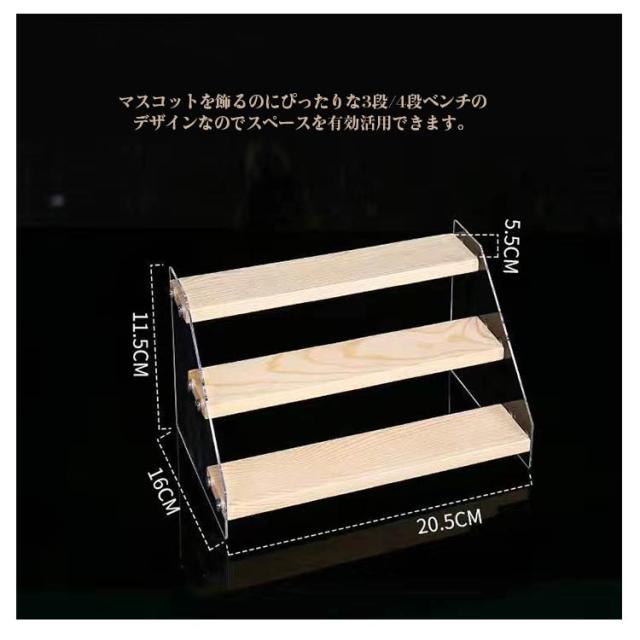 | 3段/4段ベンチでスペースを有効活用できる 天然素材を使用したぬくもりある木製のディスプレイ台です。 お気に入りのマスコットなどの小物を飾ることができます。マスコットを飾るのにぴったりな3段/4段ベンチのデザインなのでスペースを有効活用できます。 お気に入りのマスコットを飾ってお家のインテリアをさらにかわいくしてみませんか。 お気に入りが飾れるディスプレイ台 別シリーズのディスプレイ台とお気に入りのマスコットを組み合わせると、コレクションブースをより素敵に演出してくれます。 | |
