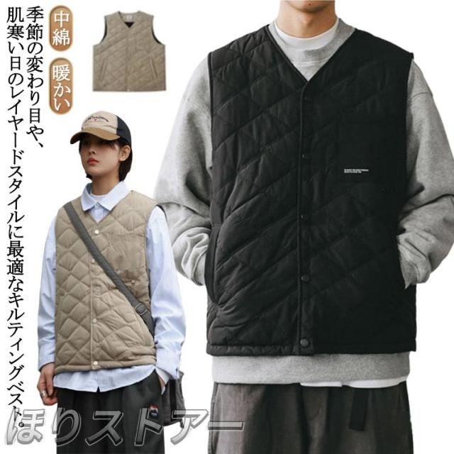 キルティング ベスト メンズ キルティングベスト 中綿ベスト ダウンベスト インナーダウン 秋 冬 アウター ノーカラー コート メンズ 重ね着 レイヤード 暖かい ポケット付 中綿 軽量 インナー ミリタリー カジュアル 大きいサイズ 春秋冬 ブラック ベージュ