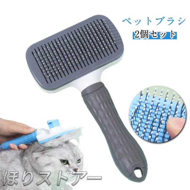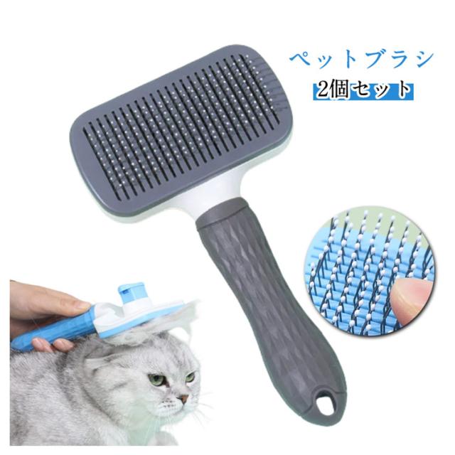 ペットブラシ 2個セット 猫 ブラシ ペット猫ブラシ ブラッシングブラシ 猫用ブラシ 犬用ブラシ スリッカーブラシ ピンブラシ ワンプッシュ式 抜け毛取りクリーナ ー 猫 毛玉 毛玉取り コーム 短毛 中毛 長毛 丸洗い可能 小動物