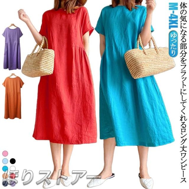 半袖ワンピース 春 リゾートワンピース 秋 夏 ロングワンピース 無地ワンピース 半袖 レディース ワンピース 膝下丈 40代 夏 ゆったり 体型カバー 大人 女子 オフィス カジュアル 30代 半袖ワンピース 50代 きれいめ ワンピ 送料無料