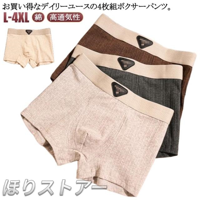 | お買い得なデイリーユースの4枚組ボクサーパンツ。 ゆったりシルエットで柔らかな綿ニットの着心地。 スタンダードで飽きのこないシンプルなデザイン。 厳選された綿を使用し、ナチュラルでソフトな着心地にこだわりました。 | |