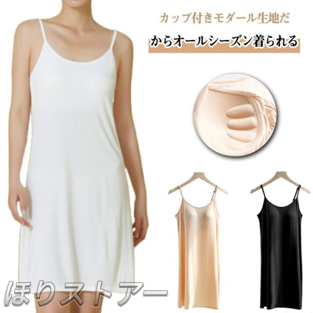 | S?2XL! カップ付き 夏涼しく冬暖かいマルチマテリアルなモダール生地だからオールシーズン着られる♪ カップ付きキャミソールワンピース。 ブラカップがバストをしっかりサポート、ストラップは長さの調節か可能です♪ ルームウェアはもちろん、ちょっとしたお出かけにもお使いいただけます。 リラックスした着心地でおうち時間を可愛く心地よく過ごしたい方へ。 またモダール生地は吸方湿性に優れておりずっと快適な着心地 締め付けを感じず、まるでつけていないような感覚。 裏地なしのワンピースやスカートのインナーに欠かせないアイテム。 | |