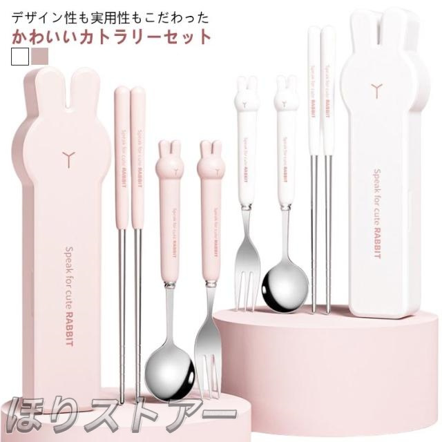 カトラリーセット お弁当 おしゃれ かわいい カトラリー 食器セット 3本セット コンビセット 兎 可愛い 子供 シンプル 雰囲気 収納 食器 ケース付き キャンプ 通勤 通学 高級感 学生 大人 箸 スプーン フォーク 持ち運び ランチ 旅行 アウトドア プレゼント ギフト 送料無料