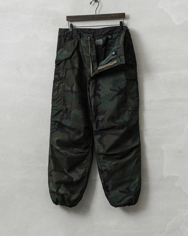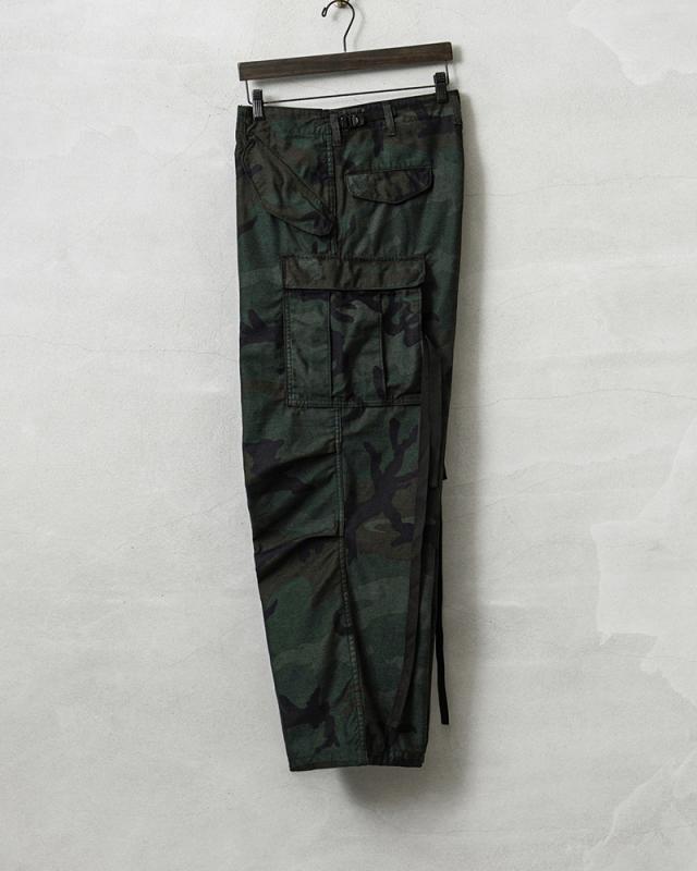 米軍で1965年に採用されたフィールドカーゴパンツは現在ではデッドストックはもとより、USEDでさえも放出されることが無くなっているカーゴパンツのルーツを辿るには外せない希少な名作トラウザーズです。こちらは1981年から2005年頃まで米軍で採用されていたウッドランドカモにガーメントダイを施しました!