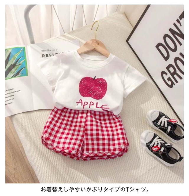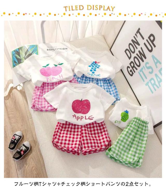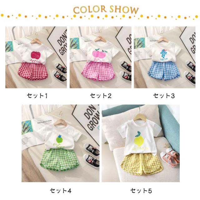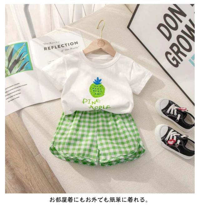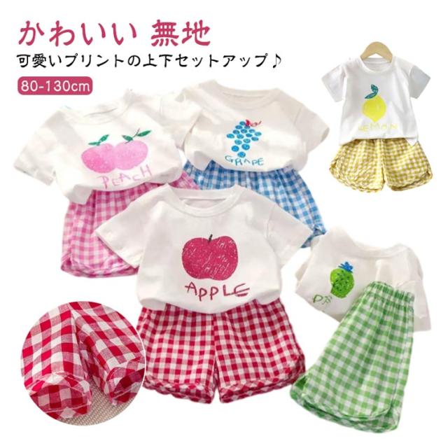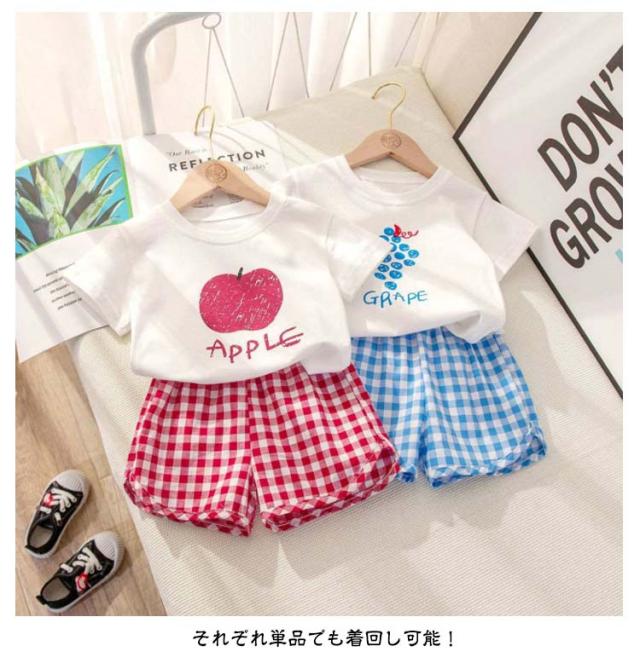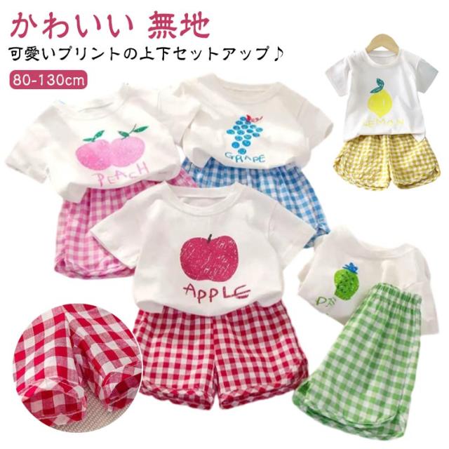 半袖 セットアップ セットアップ 短パン ショートパンツ シンプル Tシャツ 子供服 キッズ 部屋着 半ズボン 男の子 女の子 薄手 ゆったり 春夏 ベビー服 赤ちゃん 夏 無地 tシャツ フルーツ チェック柄 果物 かわいい 保育園 幼稚園 出産祝い お出かけ おしゃれ