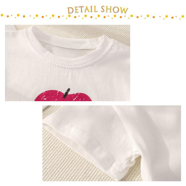 | 可愛いプリントの上下セットアップ♪ フルーツ柄Tシャツ+チェック柄ショートパンツの2点セット。 それぞれ単品でも着回し可能! お着替えしやすいかぶりタイプのTシャツ。 かわいい無地なデザインで着まわし自在なセットアップ。スポーツ、ダンス、部屋着、水遊びなど夏にいろいろな場合に大活躍! 柔らかくて、肌触りが気持ちいいです! お部屋着にもお外でも簡単に着れる。 通園、通学の普段着以外に、ダンスの練習、ルームウエア、スポーツの練習着としても、子供の日にプレゼントにも適用します。 | |