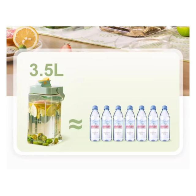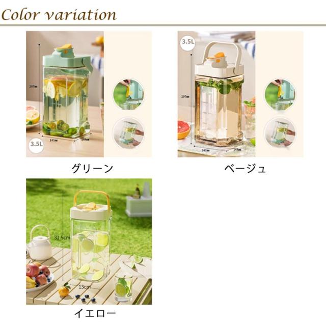 | 3.5L冷水筒 横置きOK 冷蔵庫に横置き取り出さずに注いて飲める くぼみあるから持ちやすい しっかり密封 | |