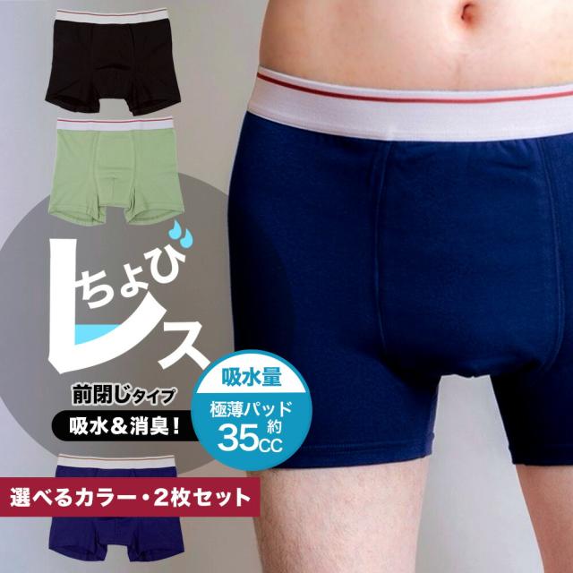 【2枚セット】尿漏れ 安心 ボクサーパンツ ちょびレス 吸水パンツ 35cc 東洋紡 galaxy 当店オリジナル メンズパンツ 男性用 紳士 失禁 ちょい漏れ チョイ漏れパンツ 失禁パンツ おしゃれ 尿漏れ パンツ 失禁 軽失禁 中失禁 下着 前閉じ ちょい漏れ対策 安心設計