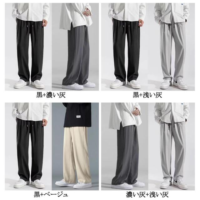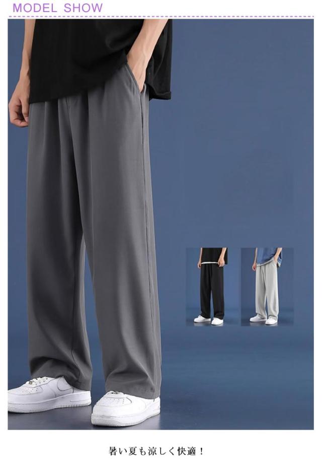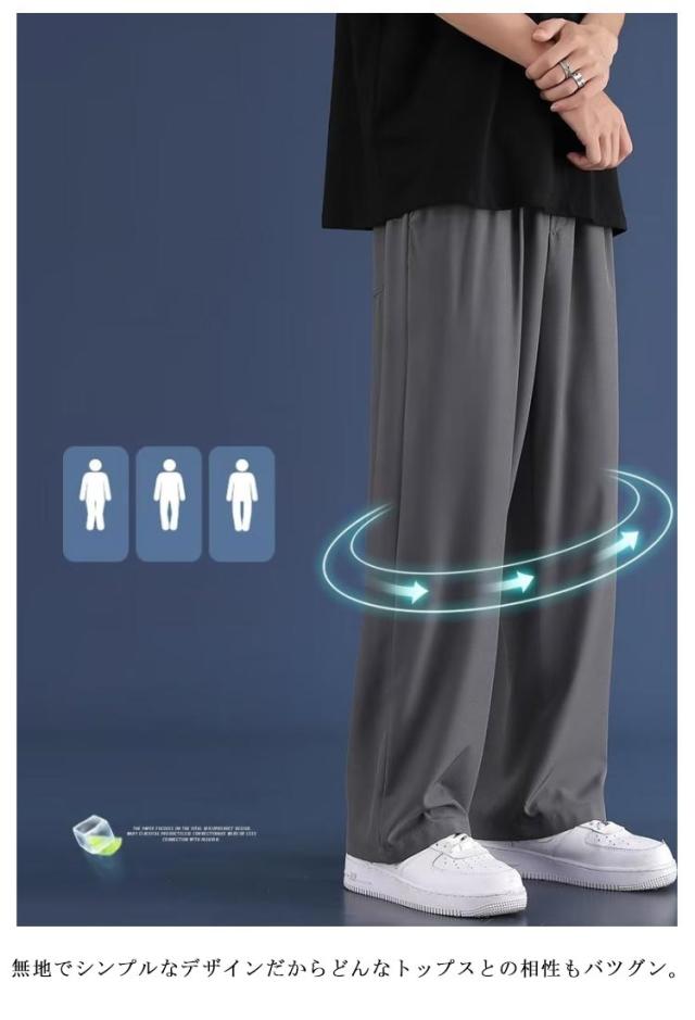 冷感パンツ 軽快 アイスシルクパンツ ズボン 涼しい イージーぱんつ 接触冷感 スラックス メンズ ワイドパンツ メンズ 夏用 冷感 2枚セット アイスシルク パンツ 軽快 ストレート ワイド パンツ メンズ レディース