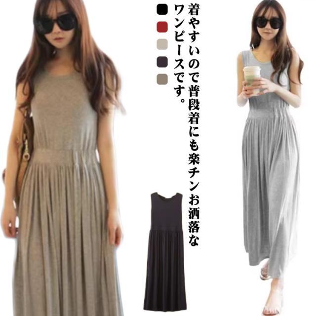 レディース ロングワンピース マキシ丈 ワンピース 夏物 インナー フレア リゾート ノースリーブ ルームウェア きれいめ ストレッチ 吸汗速乾 無地 ワンピース リラックス 薄手 ゆったり 可愛い 部屋着