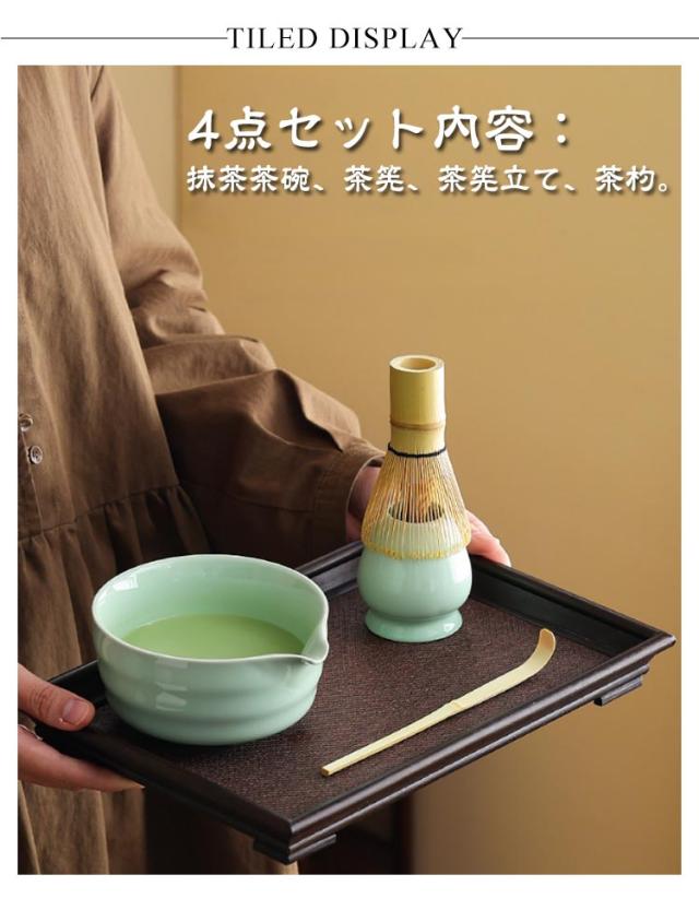 抹茶碗 陶器 茶筅 4点セット 茶道具 抹茶セット 茶器 家用茶器 茶筅立て 茶具セット 茶杓 和風 贈り物 茶道ツール 家庭用 プレゼント 抹茶セット 母の日 初心者