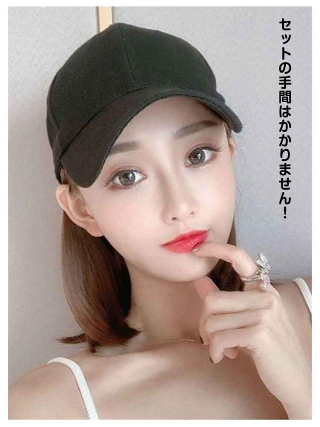 | 寝ぐせな朝も一瞬で決まる!帽子に髪がついたキャップウィッグ セットの手間はかかりません! フルウィッグとは違いかぶるだけだからちょっとお出かけしたいときに簡単ヘアチェンジ。 | |
