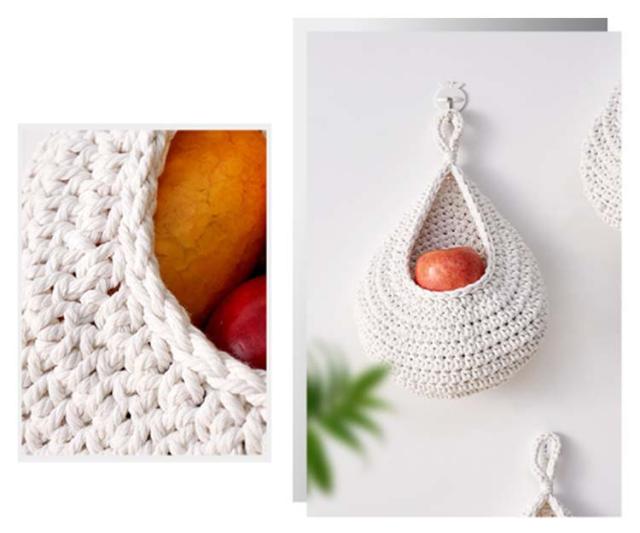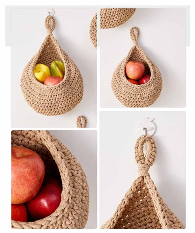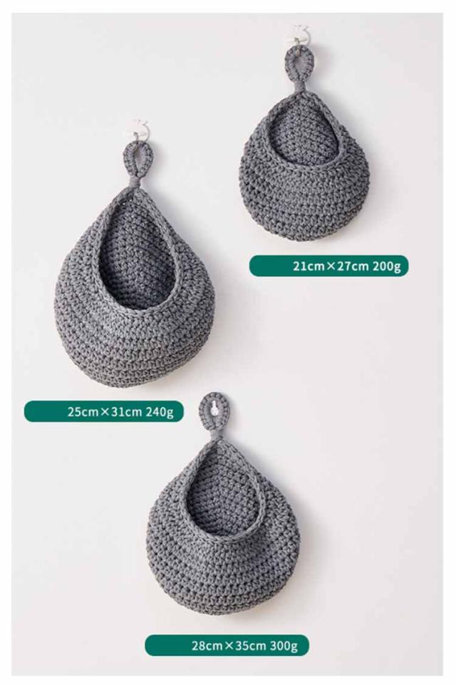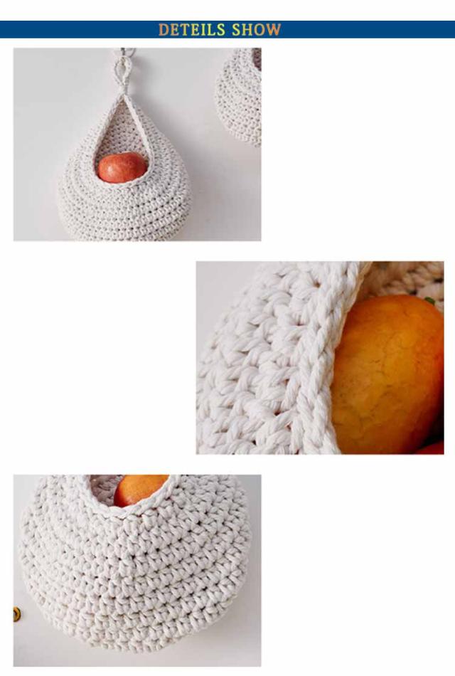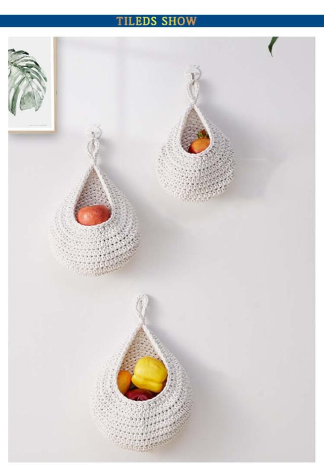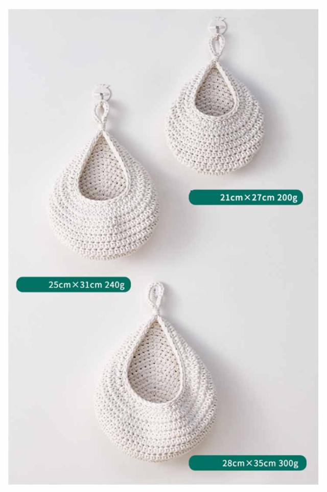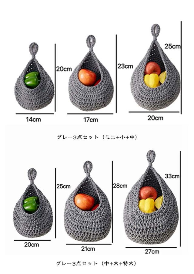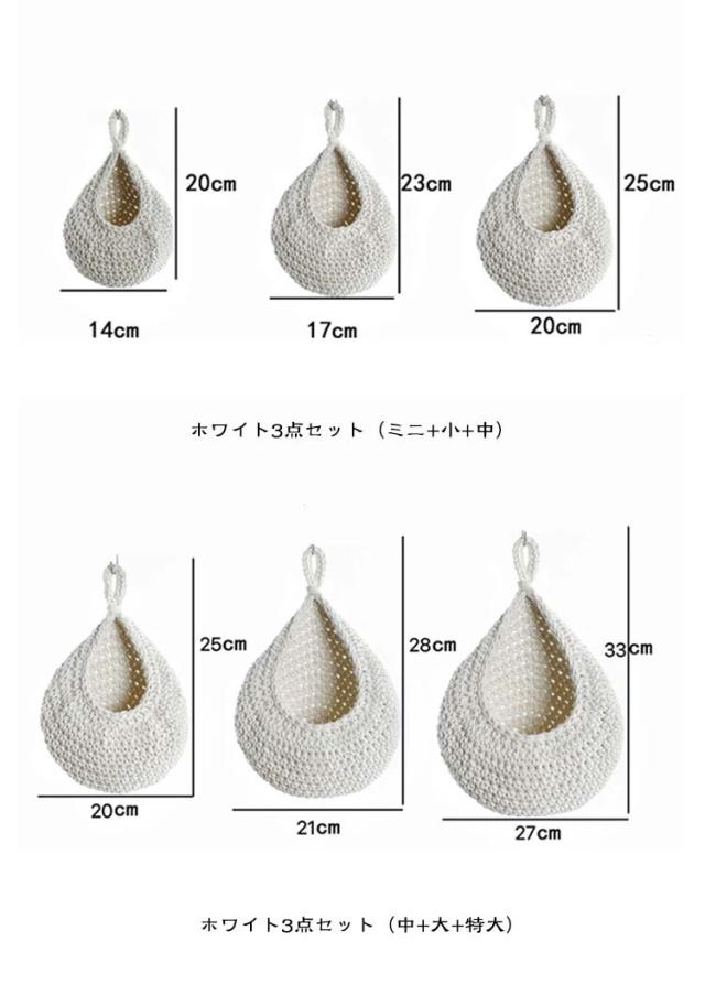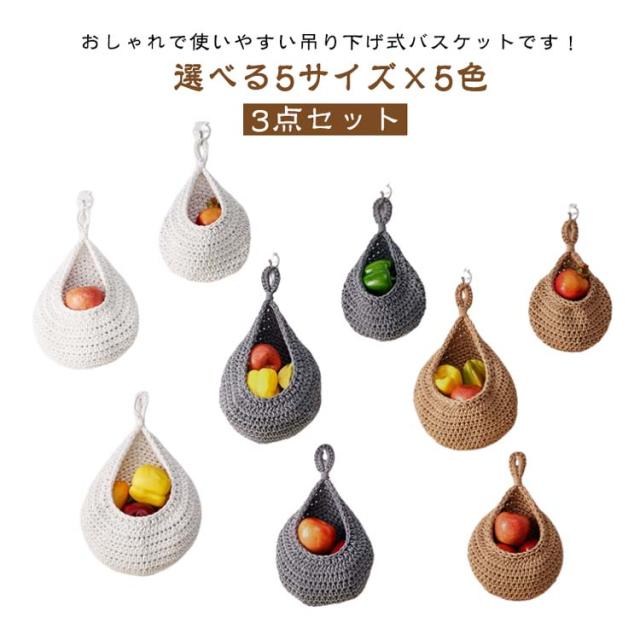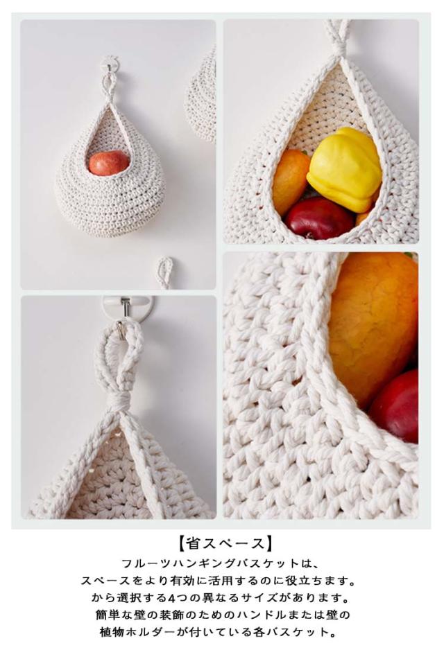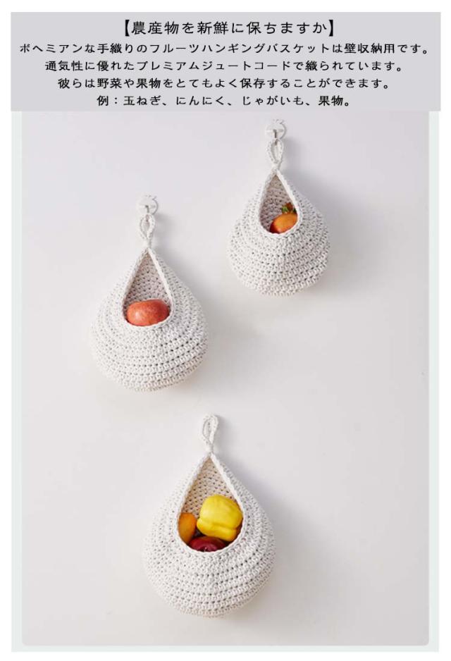 【3サイズ3点セット】 収納バスケット キッチン用 フルーツバスケット 野菜の保管 キッチン収納かご バスケット 吊り下げ式 吊り下げバスケット ロープバスケット 壁掛け用 【3サイズ3点セット】 ティアドロップ型 キッチン収納 飾り物