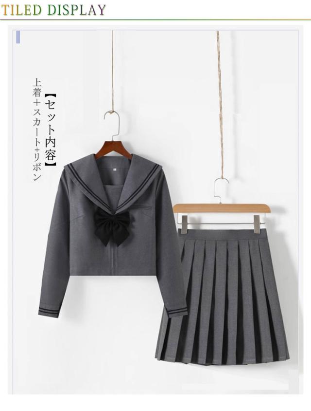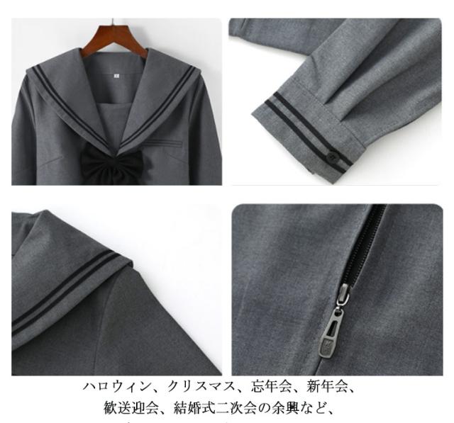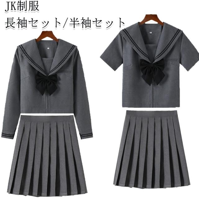 セーラー服 長袖セット 女子JK制服 半袖セット 学生服 ミニスカート 制服 プリーツスカート 可愛い グレー 上下セット リボン付き ハロウィン 高校生 学園祭 大人 レディース コスチューム衣装 リボン 女子高生 大きいサイズ