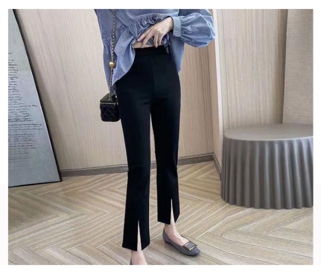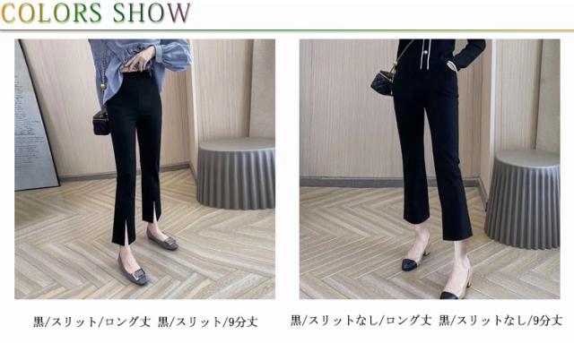センタースリット サイドスリット パンツ レディース フレア ハイウエス フレアパンツ パンツ クロップドパンツ ロング丈 九分丈 ボトムス ストレッチパンツ セレモニー 着痩せ 美脚 楽ちん きれいめ 春 夏