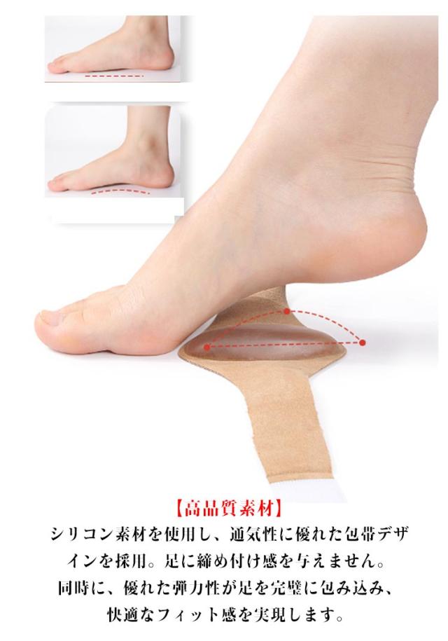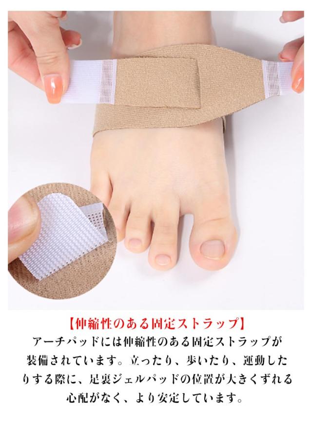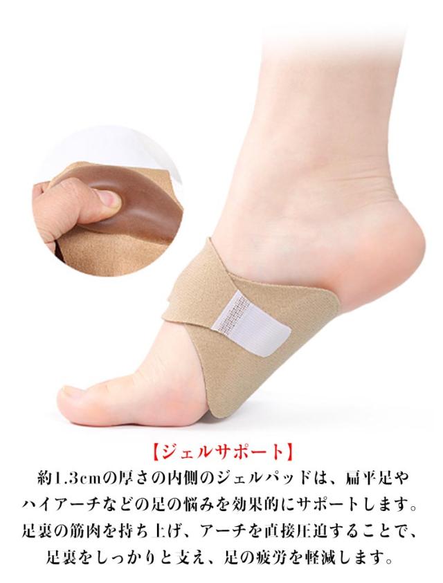 | 扁平足 サポーター1足組2個入り。 【ジェルサポート】約1.3cmの厚さの内側のジェルパッドは、扁平足やハイアーチなどの足の悩みを効果的にサポートします。足裏の筋肉を持ち上げ、アーチを直接圧迫することで、足裏をしっかりと支え、足の疲労を軽減します。 【高品質素材】シリコン素材を使用し、通気性に優れた包帯デザインを採用。足に締め付け感を与えません。同時に、優れた弾力性が足を完璧に包み込み、快適なフィット感を実現します。 【マッサージのような体験】着用すると、高さのあるサポートパッドが血行を促進し、むくみを軽減します。歩くたびに足裏をマッサージし、いつでもどこでもフットマッサージのような体験をお楽しみいただけます。 【伸縮性のある固定ストラップ】アーチパッドには伸縮性のある固定ストラップが装備されています。立ったり、歩いたり、運動したりする際に、足裏ジェルパッドの位置が大きくずれる心配がなく、より安定しています。 【様々なシーンに対応】アーチサポーターは、自宅では裸足で、靴下や靴と合わせて着用できます。スリッパ、フラットシューズ、スニーカー、ブーツ、革靴など、様々な靴の種類に適しており、日常の通勤、立ち仕事、ウォーキング、ランニング、ダンス、登山などのシーンに適しています。 | |