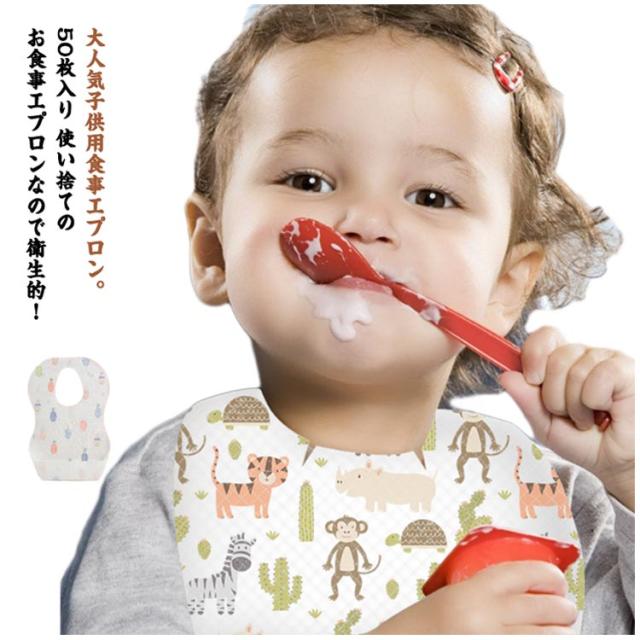 50枚入り ベビー エプロン 使い捨てエプロン お食事エプロン 子供 スタイ 前掛け 離乳食 食事 使い捨てエプロン 不織布 よだれかけ 出産祝い 男の子 女の子 ベビー 使い捨て 防水エプロン 赤ちゃん 動物柄 防滴 防水 お出かけ 携帯 大容量 ベビービブ