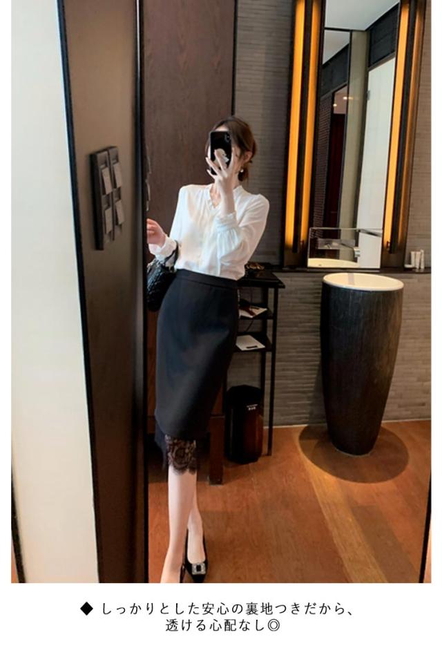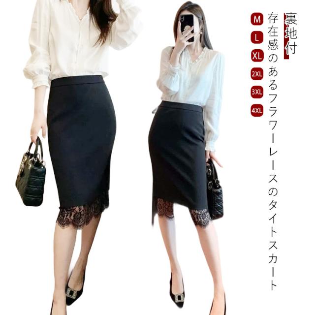 セレモニー ミモレ丈 タイトスカート スカート 50代 高見え レース裾スカート 裏地付 レディース おしゃれ 入学式 七五三 エレガントレース 人気 通勤 細見え 大きいサイズ 黒 ギフト オフィス 膝下 タイト ママ 母 親 20代 30代 40代 レース裾スカート 春 夏 秋