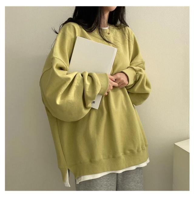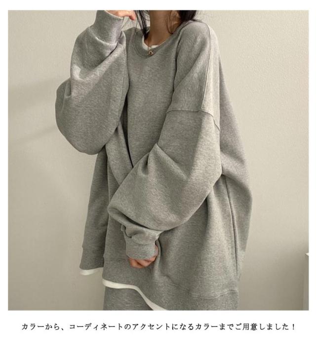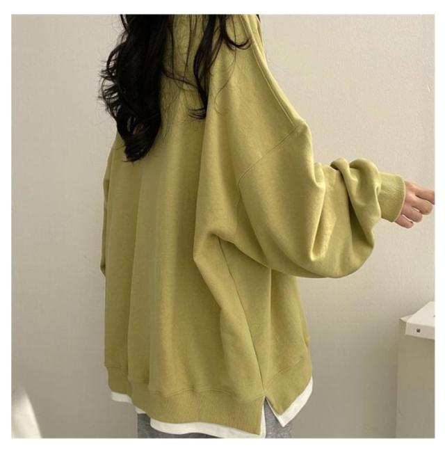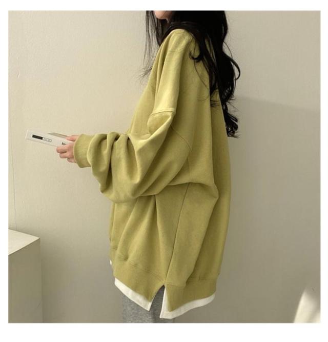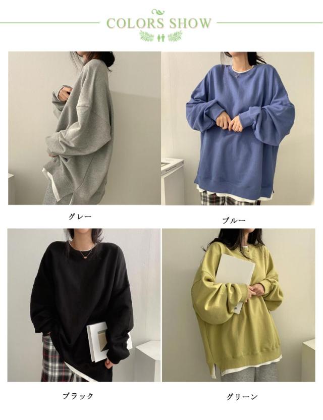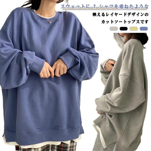 トレーナー スリット フェイクレイヤード 重ね着風 フェイクレイヤードカットソープルオーバー 秋パーカー スウェットトレーナー 長袖 レイヤード スウェット 1枚重ね着 お洒落 フェイクレイヤードカットソープルオーバー 薄手 秋カジュアル シンプル