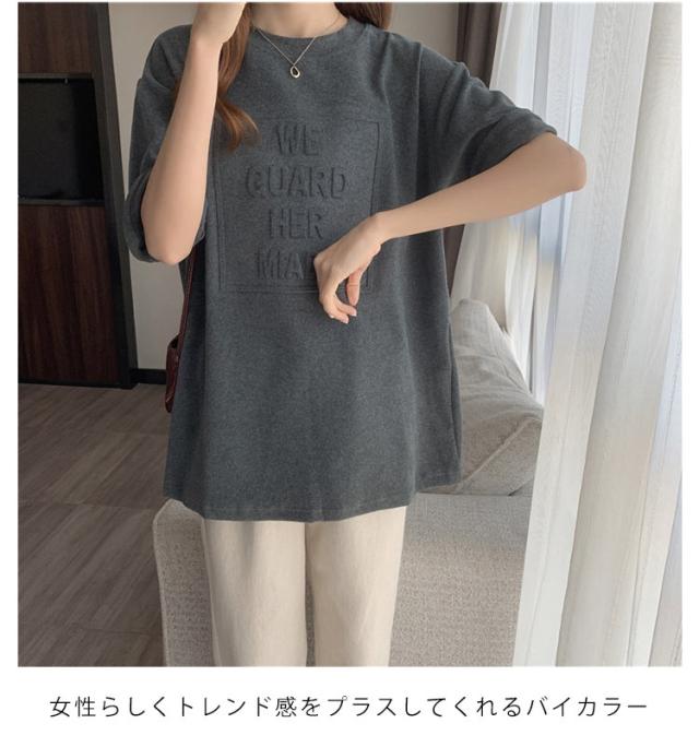 | 立体ロゴのデザインで、カジュアルな雰囲気を演出してくれるTシャツ。 女性らしくトレンド感をプラスしてくれるバイカラー。 胸元にレイアウトされたロゴは、立体感のある発泡プリントがポイントです。 ドロップショルダーでラフな印象の袖は、折り返しても可愛く着用していただけます。 トレンドのビッグシルエットなのでこなれ感が出てとても可愛く、体型かばーにも。 ゆったりとしたサイズ感と柔らかい素材感、着疲れしないリラックスできる着心地です。 | |