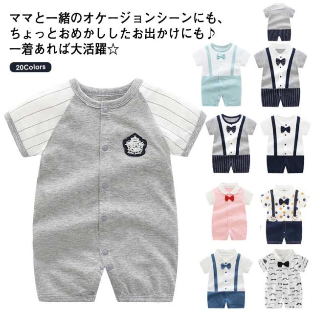 ベビー ロンパース フォーマル 男の子 半袖 カバーオール 子供 スーツ 紳士風 子供服 ボーイズ 赤ちゃん 半袖 赤ちゃん 前開き ボタン 誕生日 入園式 卒園式 キッズ ベビー服 ボディスーツ 出産祝い 結婚式 お宮参り ベビーウェア 夏 秋 冬 かわいい 60 70 80 90 送料無料