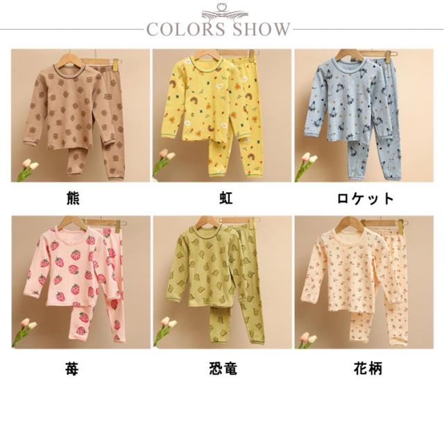 キッズ パジャマ 上下セット 子供 インナー ジュニア インナー コットン インナー 上下セット キッズ インナー インナーセット 春 秋 冬 イチゴ 恐竜 花 熊 子供 あったかインナー セットアップ 子供 保温 肌着 長袖 インナー インナー トップス ルームウェア 送料無料