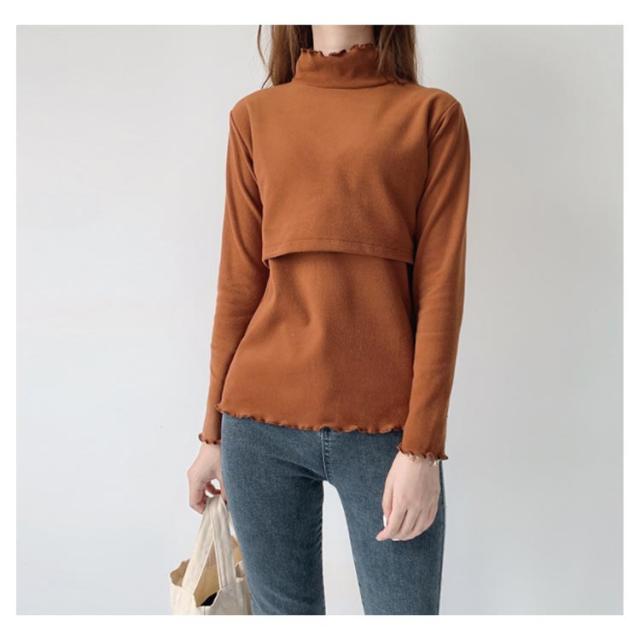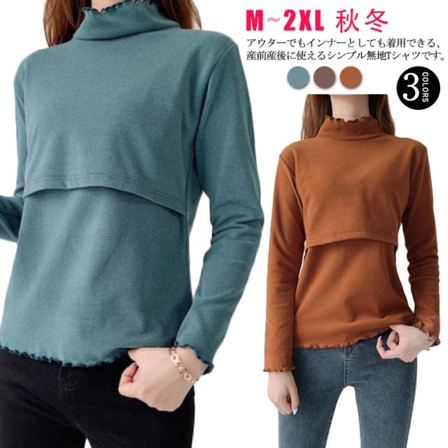 授乳トップス 授乳服 授乳口 マタニティウェア レディース マタニティー 長袖 ハーフタートルネック フロントオープンタイプ おしゃれ 可愛い 秋 冬 無地 全3色