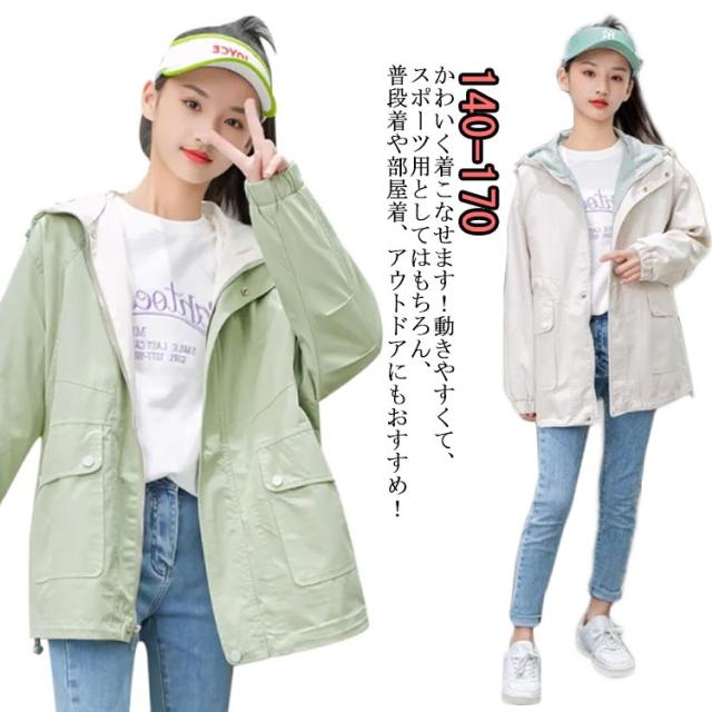 送料無料 スプリングコート 女の子 薄手 マウンテンパーカー ジュニア キッズ ジャケット ジャンパー ウインドブレーカー ジャージ 切り替え 春 アウター フード付き 長袖 子供服 秋 秋服 かわいい 140 150 160 170