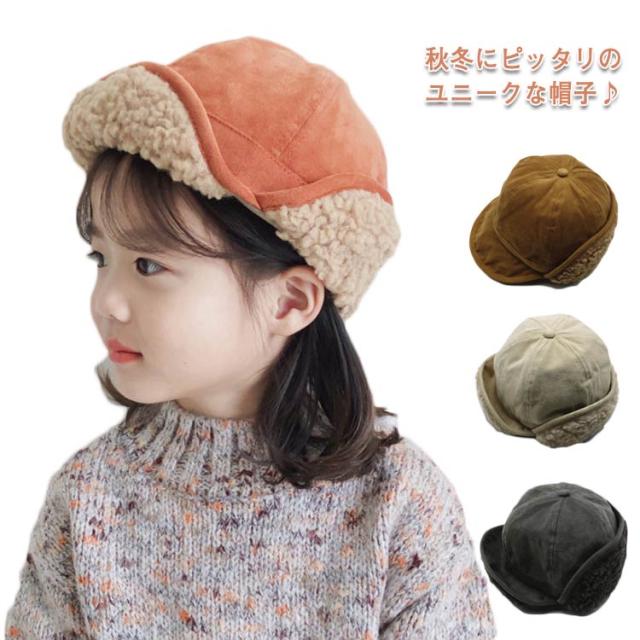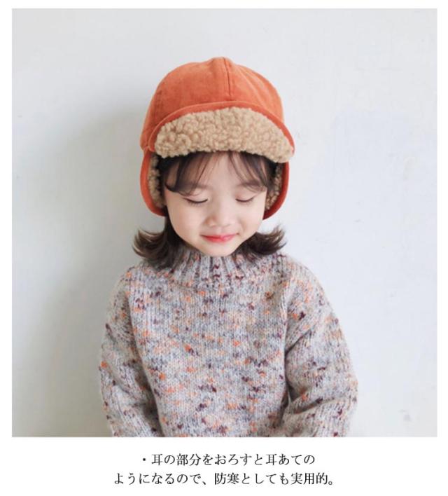 キッズ キャップ 裏ボア 帽子 ベビー 裏起毛 耳あて付き 厚手 あったか 男の子 女の子 男児 女児 出産祝い プレゼント お出かけ 通勤 通学 通園 秋 冬 無地 全5色