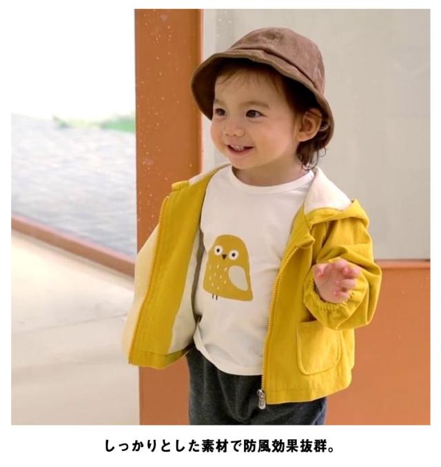 | 80-130cm!可愛い子ども用フード付きアウター。 しっかりとした素材で防風効果抜群。 大きめなフード付き、フロントポケットも配置して、機能性パッチリ。 普段着はもちろん、通園通学にもぴったりな一枚。 | |