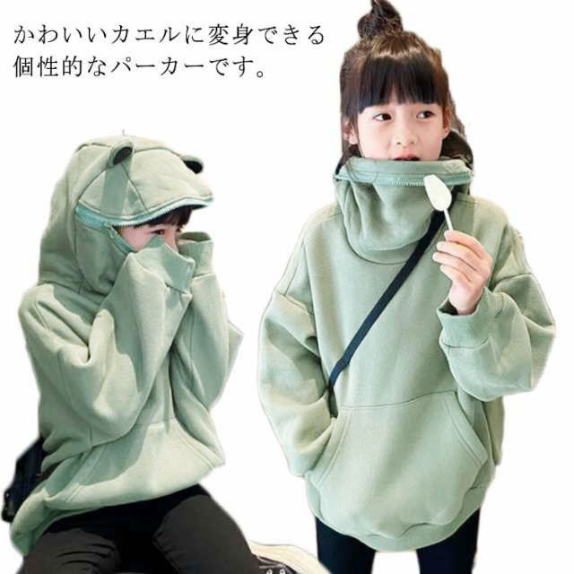裏起毛 パーカー キッズ 子供服 子ども服 こども服 カエルデザイン トレーナー フード付き スウェット スエット ジュニア 110 120 130 140 150 160 韓国子供服 冬服 暖かい 長袖 プルオーバー トップス 男の子 女の子 ユニセックス 動物 蛙 デザインパーカー 秋 冬 送料無料