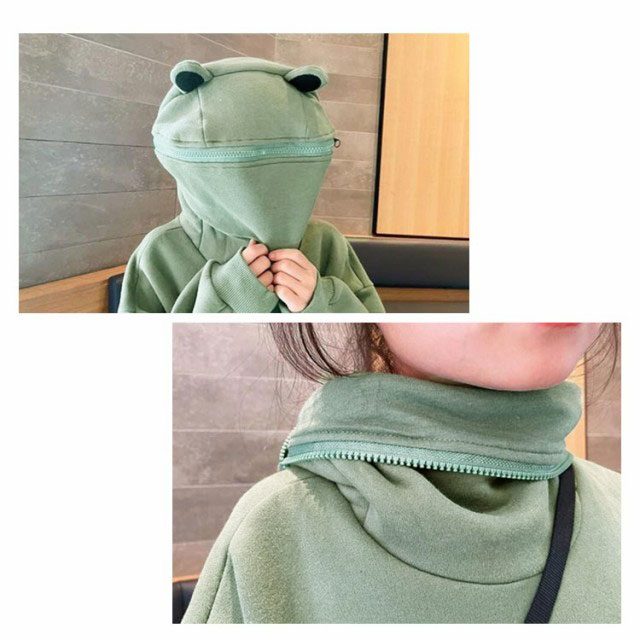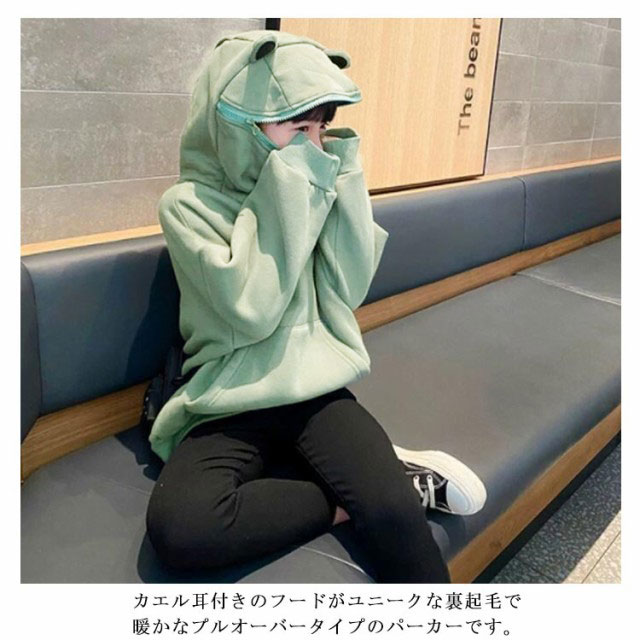 | かわいいカエルに変身できる個性的なパーカーです。 カエル耳付きのフードがユニークな裏起毛で暖かなプルオーバータイプのパーカーです。 防寒具としてもおしゃれアイテムとしても活躍してくれます。ぜひ一着をおすすめいたします。 イベント、パーティなど仮装衣装としても着用頂けます サイズはキッズからジュニアまで使える110-160展開! | |