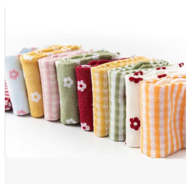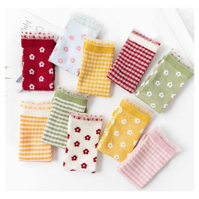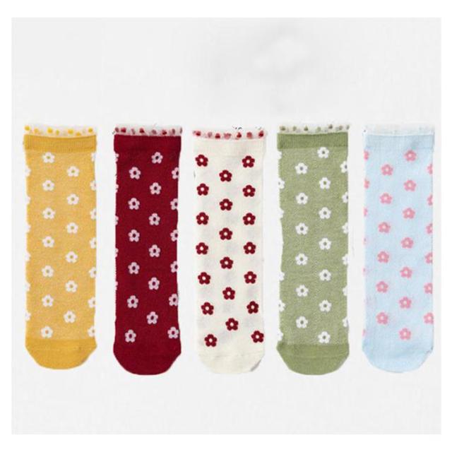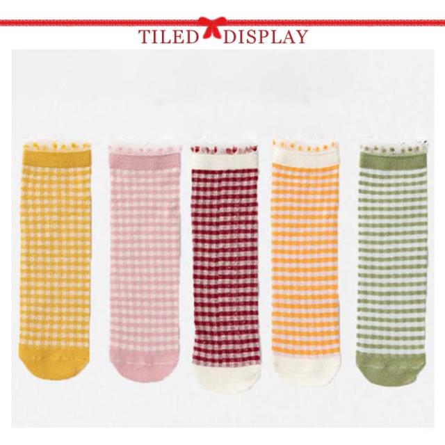 靴下 キッズ 子供 ハイソックス 5足セット チェック柄 花柄 女の子 ガールズ ジュニア かわいい おしゃれ 春 夏 秋 綿 通気性抜群 運動会 目立つ ダンス お出かけ 通園 通学 靴下 28cm 送料無料