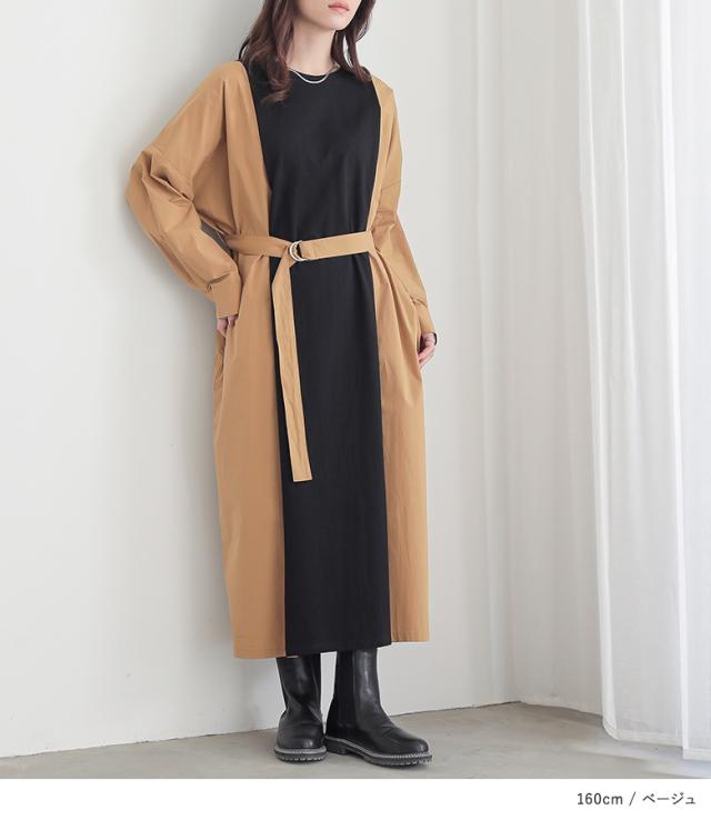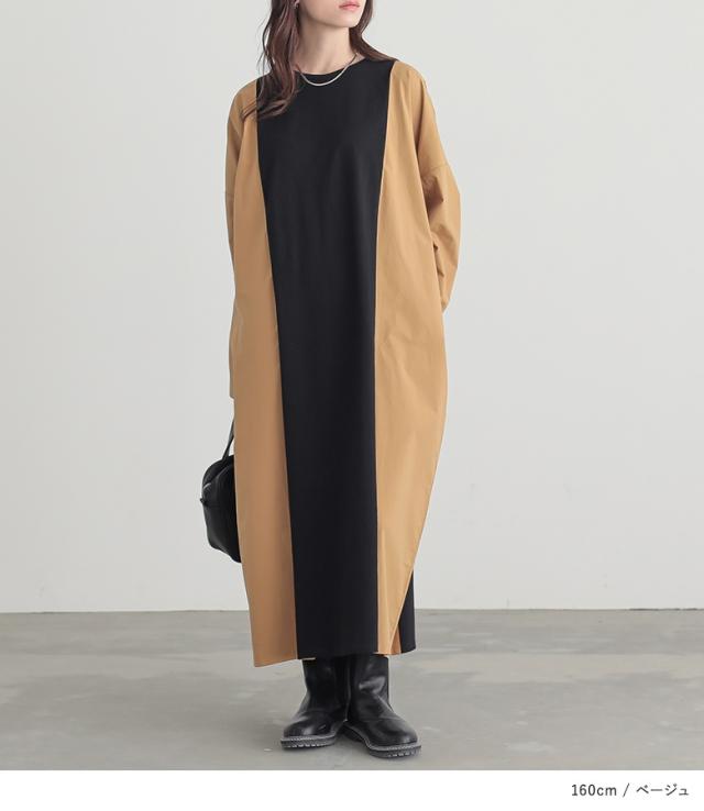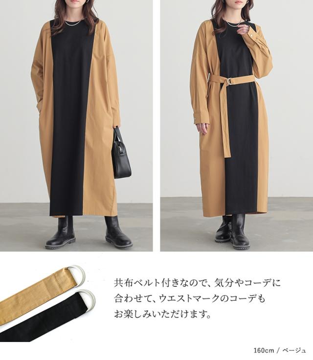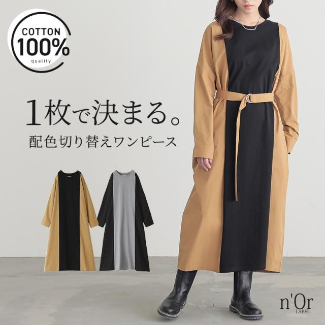 ワンピース ロング レディース 長袖 配色 異素材 ドッキング カットソー コットン100% ベルト付き 体型カバー ポケット 春 秋 【TP】 ロングワンピース マキシワンピース カットワンピース クルーネック n'OrLABEL ノア—ルレーベル 大人女子 大人可愛い お洒落可愛い 大人カジュアル ベーシック ニュアンス ラフ エフォートレス オフィスカジュアル 上品 きれいめ ナチュラル ロング丈 ドロップショルダー 2way 調節できる 調整可能 ウエストマーク 無地 綿100% 異素材MIX おうちで洗える カジュアル シンプル モード キレカジ フェミニン ガーリー 可愛い系 ゆったり ゆる 楽ちん 動きやすい 二の腕カバー Sサイズ Mサイズ Lサイズ LLサイズ 3Lサイズ XLサイズ フリーサイズ ぽっちゃり 大きいサイズ プラスサイズ 10代 20代 30代 40代 50代 60代 osharewalker オシャレウォーカー おしゃれうぉーかー ベージュ ブラック 黒[ID]13do0f1[n'OrLABELベルト付き異素材配色ワンピース]